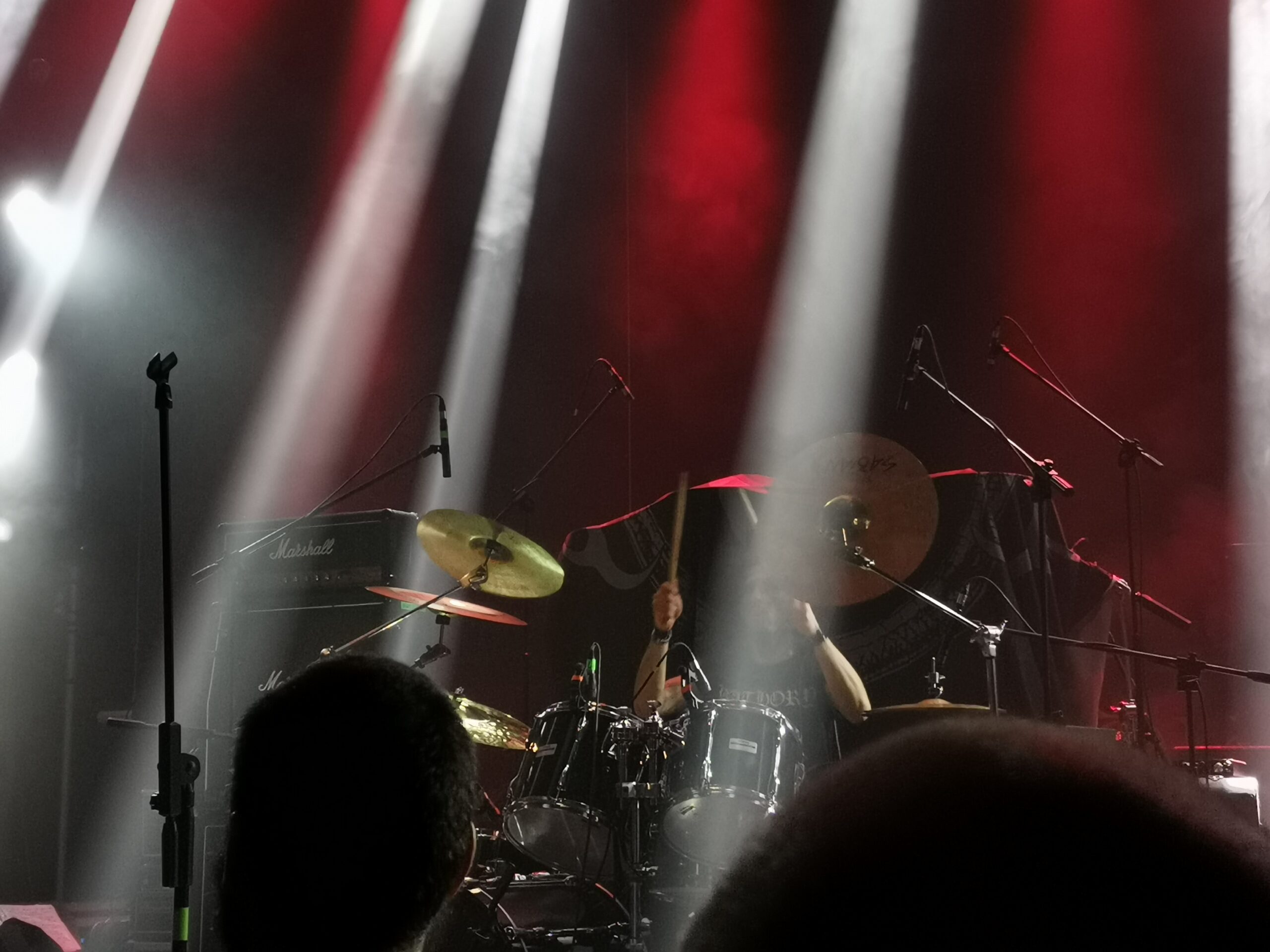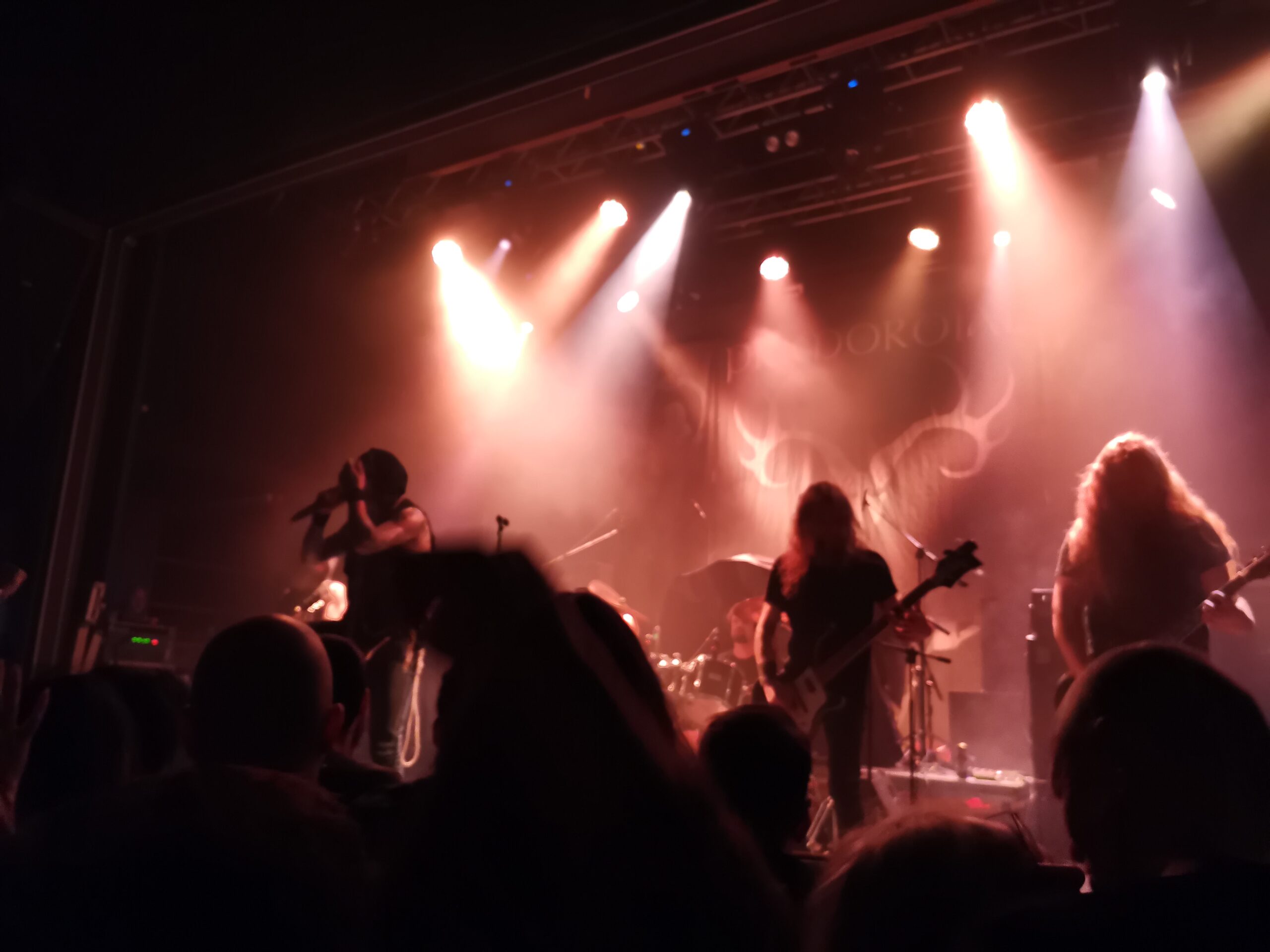 Πέρα από το γεγονός πως η αναφορά του αποψινού προγράμματος είχε ως το ζουμί της υπόθεσης τους Triumph of Death για τους εξής λόγους, είχαμε την τύχη να παρακολουθήσουμε μία εξίσου καταπληκτική Extreme μπάντα που ήταν μαζί τους, όπου περίμενε αρκετός κόσμος μαζί με ToD. Μιλάμε φυσικά για τους Ιρλανδούς Pagan Black Metallers, Primordial, μία αγαπητή μπάντα για το Ελληνικό κοινό, όπου έχει χτίσει μια ιδιαίτερη σχέση εδώ κι αρκετά χρόνια. Να πω την αμαρτία μου δεν έχω ασχοληθεί παραπάνω με την μουσική των Ιρλανδών, όχι ό,τι με χαλάει, προς Θεού το αντίθετο, όταν άκουσα από κοντά περισσότερα από τα (μεγαλύτερα σε διάρκεια) κομμάτια τους ήταν φοβεροί μπορώ να πω, ζεστοί σε σκηνική παρουσίαση, έχοντας φυσικά έναν A.A Nemtheanga να τραγουδάει με το σχοινί γύρω από τον λαιμό του και να έχει ωραία επικοινωνία με το κοινό που ανταποκρινόταν σε headbanging και τραγουδούσε ταυτόχρονα από κάτω σχεδόν όλα τους τα τραγούδια, από τα κλασικά μέχρι τα πιο πρόσφατα από την τελευταία τους κυκλοφορία (“How It Ends”). Έπαιξαν αρκετή ώρα, με mid tempo ρυθμούς, με επικό-παγανιστικό ύφος που είχε αναφορές σε Ιστορίες και διάφορες Πολιτιστικές κληρονομιές στους στίχους τους, είχαν ενδιάμεσες Heavy και Black στιγμές όπως τους έχουμε μάθει. Ευελπιστούμε κι ευχόμαστε σύντομα να τους ξαναδούμε επί σκηνής!!