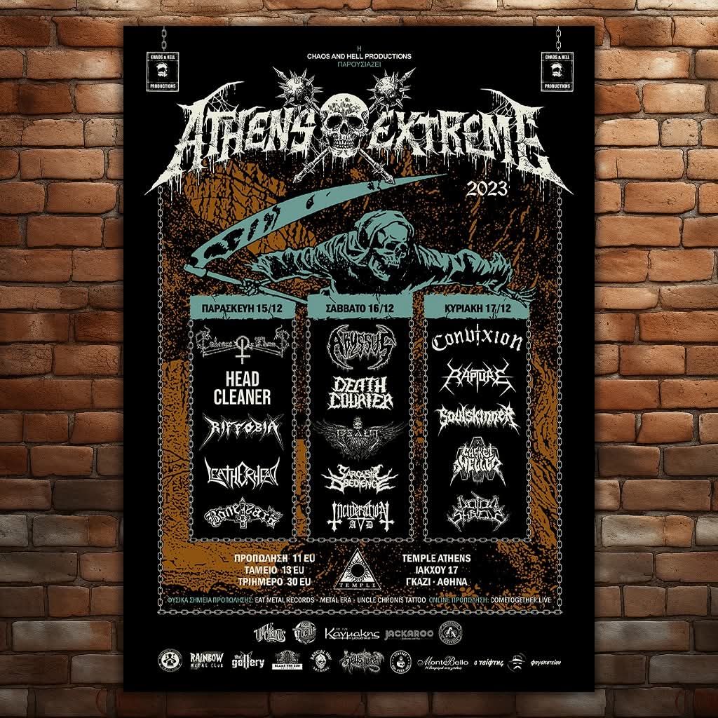 Είχαμε την τύχη να μιλήσουμε με τους διοργανωτές του Athens Extreme, τον Κώστα και τον Πάνο, γνωστές φυσιογνωμίες της εγχώριας σκηνής (παίζοντας σε μπάντες όπως οι Abyssus, Soulskinner, Casket Dweller κλπ, προσφέροντας Underground ποικιλία μέσω της Chaos And Hell Productions, και τη δυνατότητα να γίνονται τα φεστιβάλ), όπου μας περιγράφουν για το πως ξεκίνησε να χτίζεται σαν ιδέα, για το πως κύλισαν τα δεδομένα της διοργάνωσης μετά την καραντίνα, και φυσικά, για τις μπάντες που πρόκειται να παρακολουθήσουμε στο φετινό τριήμερο που είναι 13 με 15 Δεκεμβρίου, και πολλά άλλα.