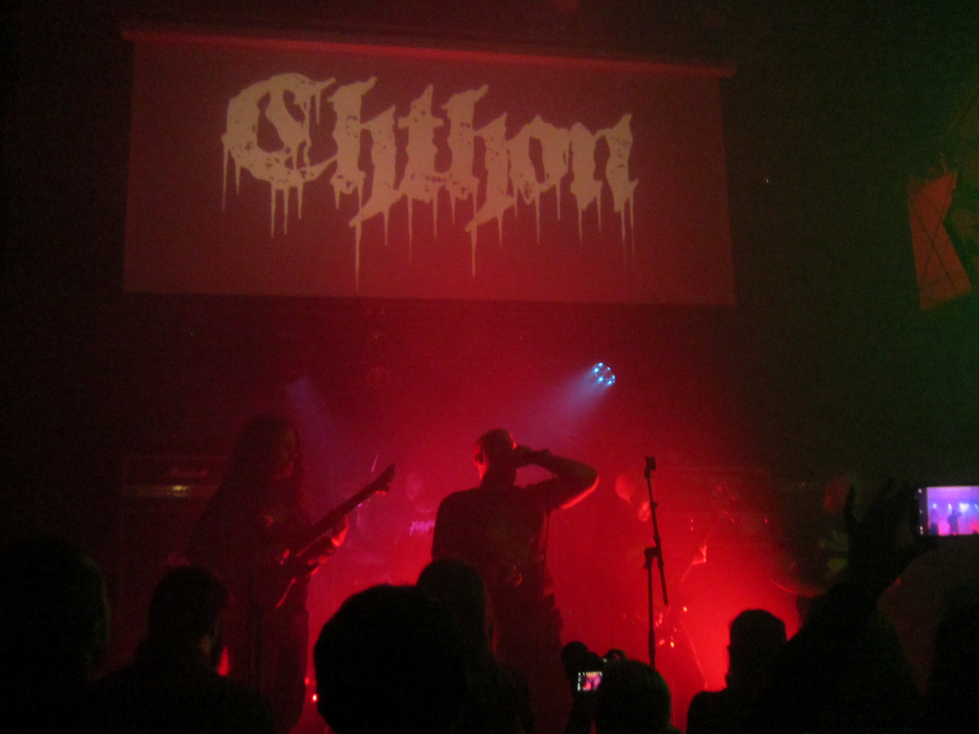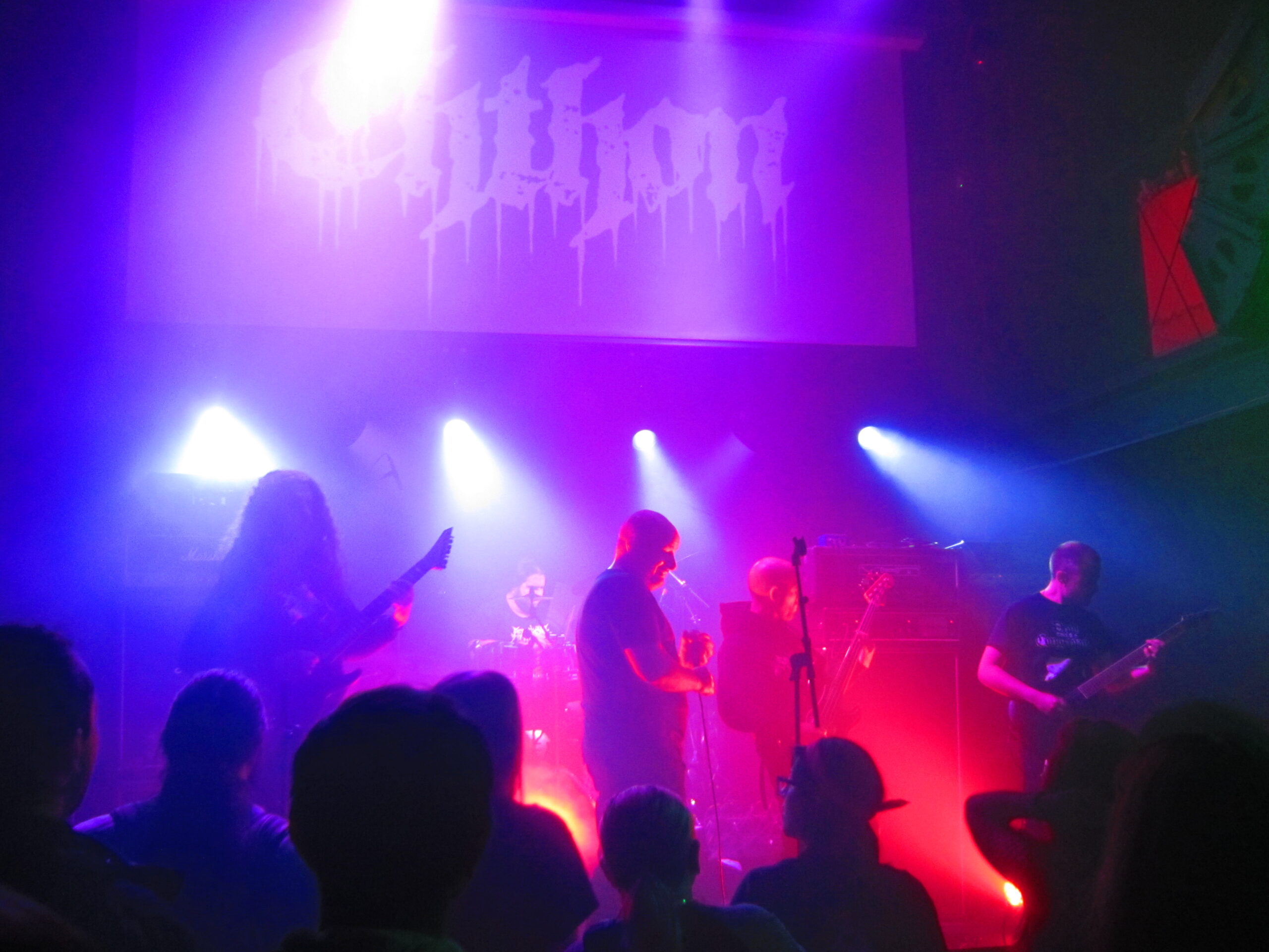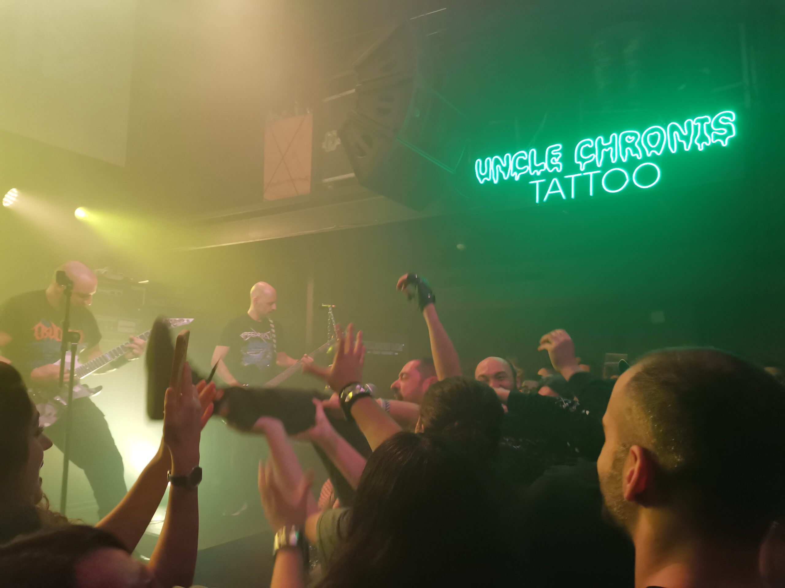 Πηγαίνοντας λοιπόν τη δεύτερη μέρα, μπορώ να πω πως μπήκε εξίσου με άγριες διαθέσεις, με τους Blackened Deathsters, Chthon (Χθων). Ενεργοί από το 2018, με ένα full length album στη δισκοθήκη τους (το ντεμπούτο του “Eremite” που κυκλοφόρησε πέρσι τον Μάϊο του 2023), και τώρα, μετά από πολύ καιρό έρχεται η ώρα να κάνουν τη πρώτη τους ζωντανή εμφάνιση στον ναό της Αθήνας (με μια βοήθεια αντικατάστασης στα drums από τον Γιώργο Τσάφο των Incineration A.D, Exarsis, Karma Violens κλπ, επίσης έχουν νέο κιθαρίστα στις δεύτερες κιθάρες, τον N.K., φωνή-κιθάρα των Plague), ομολογώ πως δεν είχα προετοιμαστεί (εκτός από το ομώνυμο κομμάτι του Eremite), παρόλα αυτά νιώθω ό,τι η εμφάνιση τους μίλησε από μόνη της, και με το παραπάνω θα έλεγα. Καταιγιστικό riffing που παίρνει κεφάλια με άρωμα Σουηδίας/Ολλανδίας, clean στιγμές που σε τραβάνε στο σκοτάδι της αβύσσου, μεσαίες και γρήγορες ταχύτητες στο Tempo του Rhythm section, τα blast beats και τις δίκασες γενικά, και βρώμικα growls που μιλάμε για μύθους, τον chthulu, σκοτάδια, εσωτερικό χάος και πολλά άλλα τέτοια στοιχεία που περιβάλλονται στο ύφος των Chthon. Προσωπικά μία από τις αναφορές που λάτρεψα μετά από εκείνες τις μέρες, όσοι είστε λάτρεις των Behemoth, Entombed, Kaamos και Decomposed Existence, βρήκατε το σωστό μέρος.