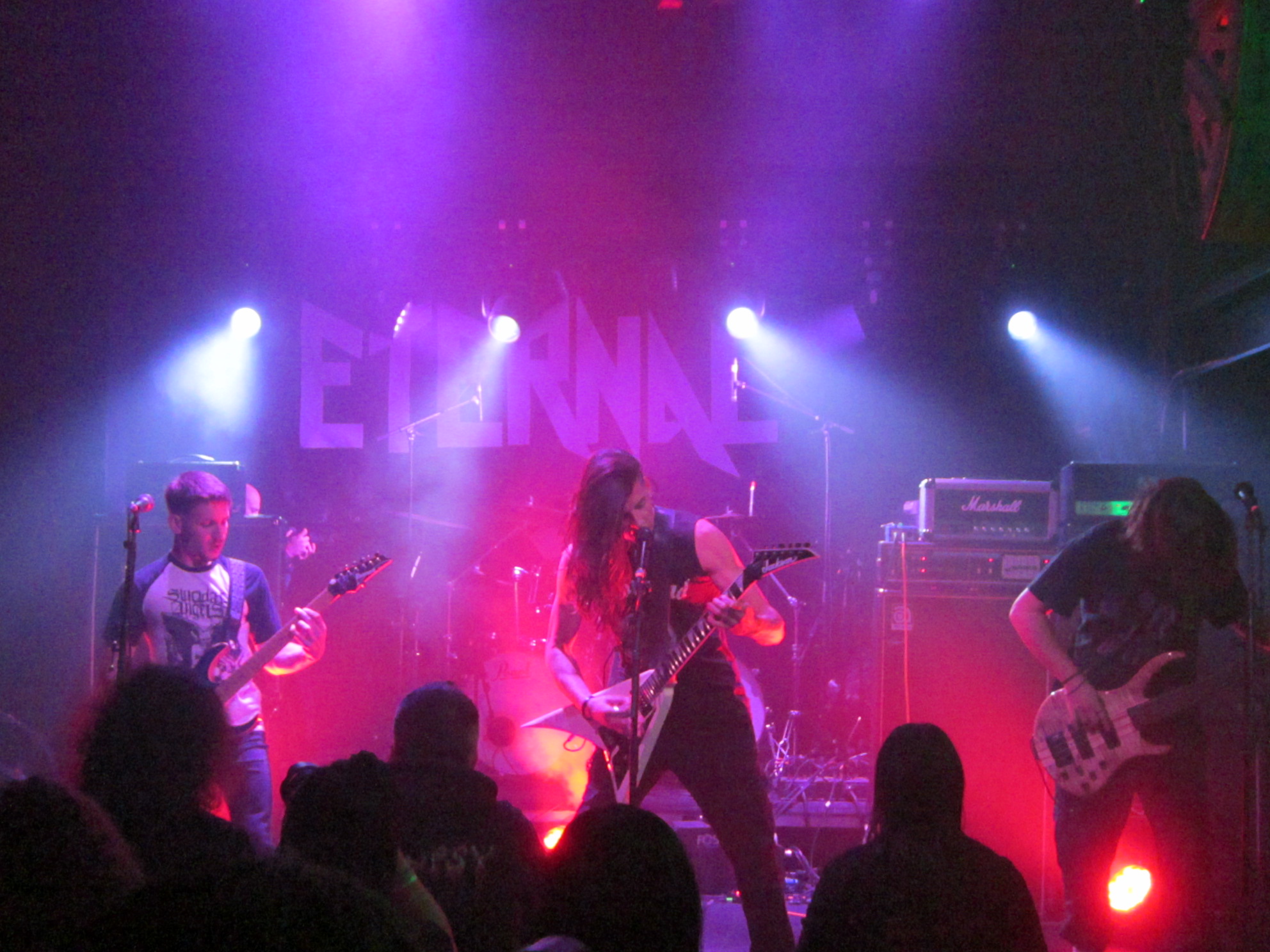 Η έναρξη του τριημέρου ξεκίνησε αρκετά δυναμικά, με τους δικούς μας Eternal, ένα νεοσύστατο σχήμα που προέρχεται από τα Αθηναϊκά πλαίσια, παραδίδοντας μαθήματα καλο-παιγμένου, oldschool Thrash Metal που πλησιάζει καταστάσεις τύπου Metallica, Havok, Municipal Waste (και λίγο DRI/Suicidal Tendencies στα φωνητικά), κι ό,τι μπορεί να φανταστεί κανείς σε κλασικές 80ς περιπτώσεις, με γρήγορο tempo και clean εισαγωγές που σου χαϊδεύουν τα αυτιά. Έχοντας εμπειρίες σε διάφορες εμφανίσεις σε φεστιβάλ (Schoolwave, Golden R. Fest) και σε μερικά opening acts (σε Karma Violens, Sacrificial Death κλπ), και δύο εντυπωσιακά singles (“No Escape” και “Bloodspill”), καταλαβαίνεις πως αυτά τα παιδιά ζουν για αυτό κι αγαπάνε αυτό που κάνουν, κι ο κόσμος τη πρώτη μέρα έδειξε το ενδιαφέρον του, σε μία μπάντα που μπορεί να κάνει πολλά κι ωραία πράγματα στο μέλλον, μέχρι τότε, αναμένουμε για το νέο τους υλικό, όπου και το παρουσίασαν εκείνο το βράδυ. Δυνατό performance, το rhythm section λειτουργούσε με ωραίο τρόπο, ειδικά στα solos και τα riffs του Σπύρου Παίξου και Νίκου Πόγκα, επίσης οι παύσεις όταν έμπαιναν τα riffs του Νίκου Τσαούση με το μπάσο του, όσο για τις σφαγές του Αλέξανδρου Αρχανιώτη στα drums, απλά τέλεια. Όσο/ες δεν τους μαθαίνουν, κάντε τη χάρη στον εαυτό σας και βάλτε τα δυο τους Singles που βρίσκονται στο Youtube (και στο Spotify).