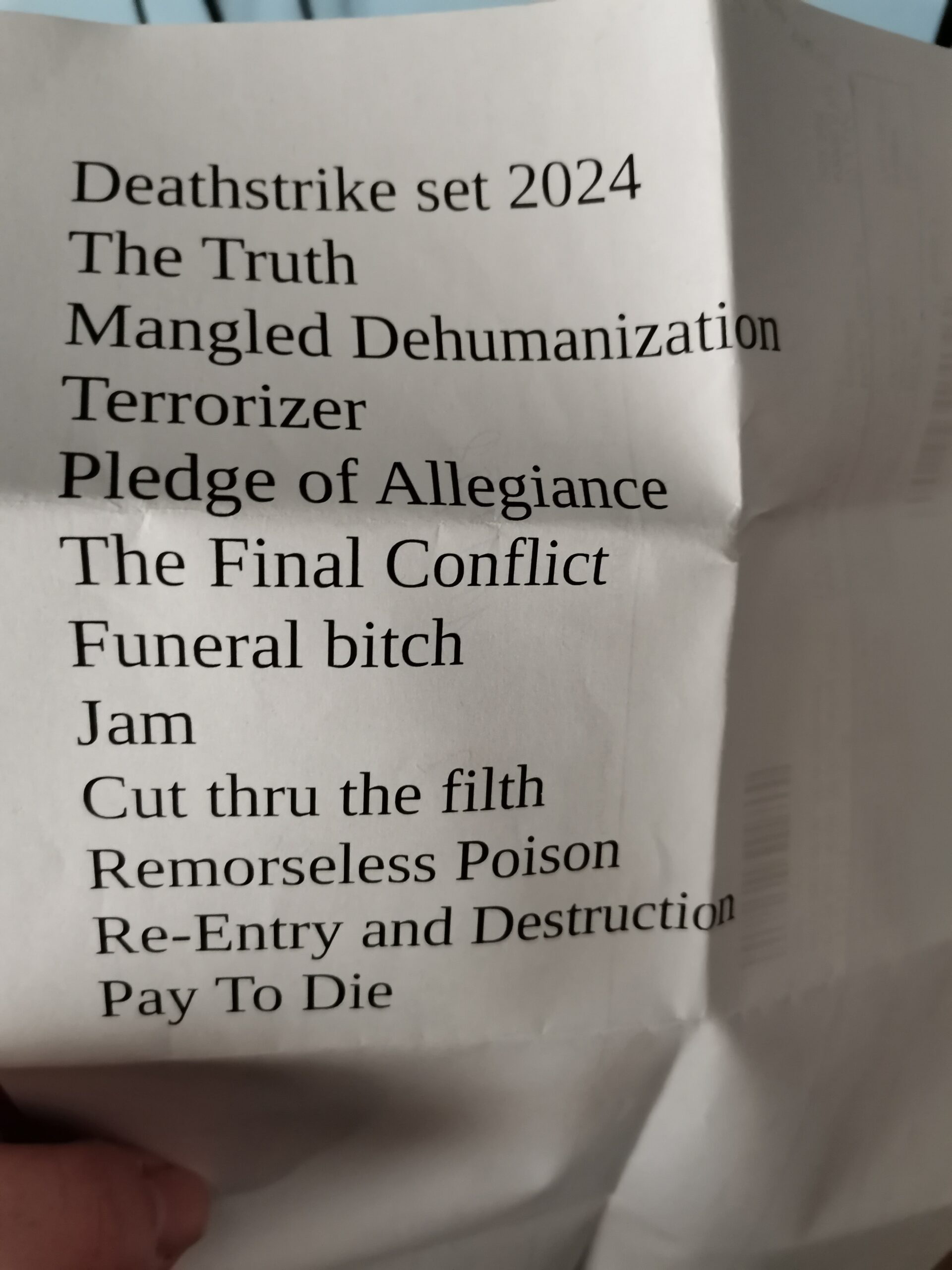 Προετοιμάζοντας το έδαφος για το τελευταίο όνομα, δηλαδή το κερασάκι στη τούρτα που θα έκλεινε θριαμβευτικά το τζέρτζελο αυτής της χρονιάς για το Athens Extreme, και μάλιστα, επιστρέφοντας μετά από οχτώ ολόκληρα χρόνια από τη τελευταία τους επίσκεψη που είχε γίνει το 2016, κυρίες και κύριοι, τον τελευταίο λόγο τον έχουν οι Αμερικανοί Master! Αυτή είναι η δεύτερη φορά που είδαμε το ίδιο (απολαυστικό) lineup μετά τους Death Strike, τώρα τους είδαμε επιτέλους κι ως Master, όνομα με τεράστια κληρονομιά στις πλάτες του (“Master”, “On The Seventh Day…”, “Collection of Souls” κλπ) που παραμένει εμβληματική μέχρι και σήμερα στο Death Metal (και στο Extreme γενικά) ιδίωμα, συνεχίζοντας βέβαια να βγάζουν εξαίσιο υλικό στη πορεία τους, όπως το φετινό “Saints Dispelled” (παρουσιάζοντάς μας από εκεί κι ένα δείγμα του, το “Destruction In June”) που βγήκε στην επιφάνεια στις αρχές του 2024, ή προηγούμενες δουλειές που καταφέρνουν και σου δίνουν μια λάμψη σπίθας (“Let’s Start A War”, “Slaves To Society”, “The New Elite”, “An Epiphany of Hate”, είναι μερικά παραδείγματα, μάλιστα στη τρίτη αναφορά έτυχε να παίξουν το “Remove The Knife”). Από τη μία είναι κρίμα που δεν είχε τον κόσμο που παρέμεινε μέχρι στους Centinex (αν και την επόμενη μέρα είχε δουλειά Δευτέρα, οπότε Makes sense για το πρωινό ξύπνημα), από την άλλη όμως δε μπορούμε να πούμε πως με αυτή την αφορμή θα πήγαινε στράφι, αντιθέτως όσοι παρευρέθηκαν και κάτσανε ως το τέλος το χάρηκαν με όλη τους τη ψυχή, το headbanging ξεβίδωνε όλο και πιο πολύ, το pit ακούραστο έχοντας στο ενδιάμεσο μερικά crowd surfings, το παρουσιαστικό της μπάντας είναι αυτό που είδαμε και στους Death Strike, ανίκητο, με τη διαφορά πως το Setlist κυριαρχούσε με κλασικές επιλογές που προερχόντουσαν κυρίως από τα πρώτα δύο (“Master”, “Pledge of Alliance”, “Unknown Soldier”, η Sabbath διασκευή στο “Children of The Grave”, “Judgement of the Will”, “Submerged In Sin”, “Pay To Day”, “Re-Entry And Destruction”), μαζί με κάτι ψιλά από τα τελευταία τους (“The New Elite” και “Saints Dispelled” που αναφέραμε προηγουμένως), καταλήγοντας το show να τελειώσει μέχρι τις 1:20 και να μας αφήσουν με ένα τεράστιο χαμόγελο.